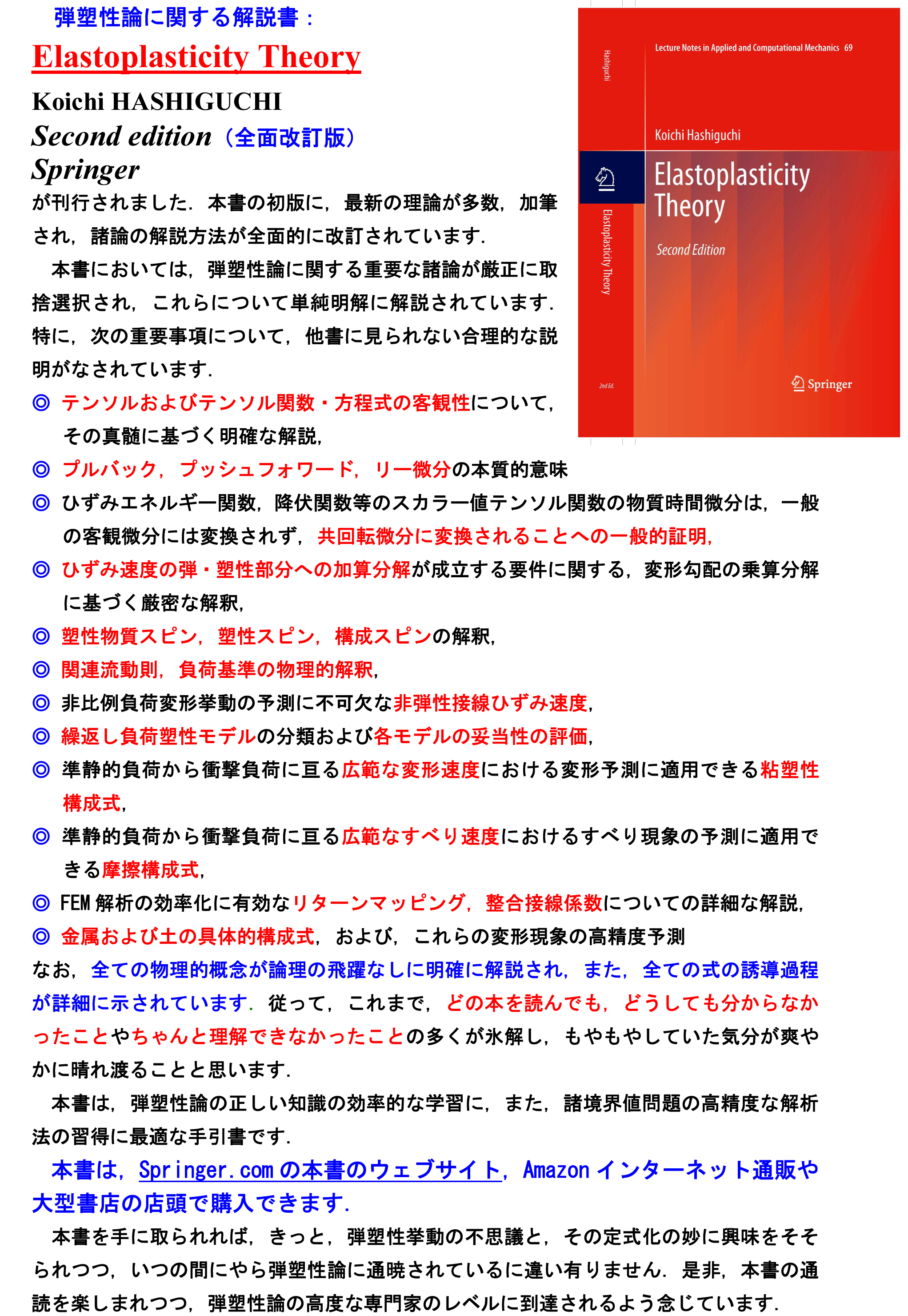6. 地盤構造物のFEM解析例 7. 出版書籍 8. Elastopasticity Theory |