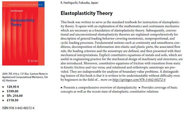 6. 地盤構造物のFEM解析例 7. 出版書籍 8. Elastoplasticity Theory |